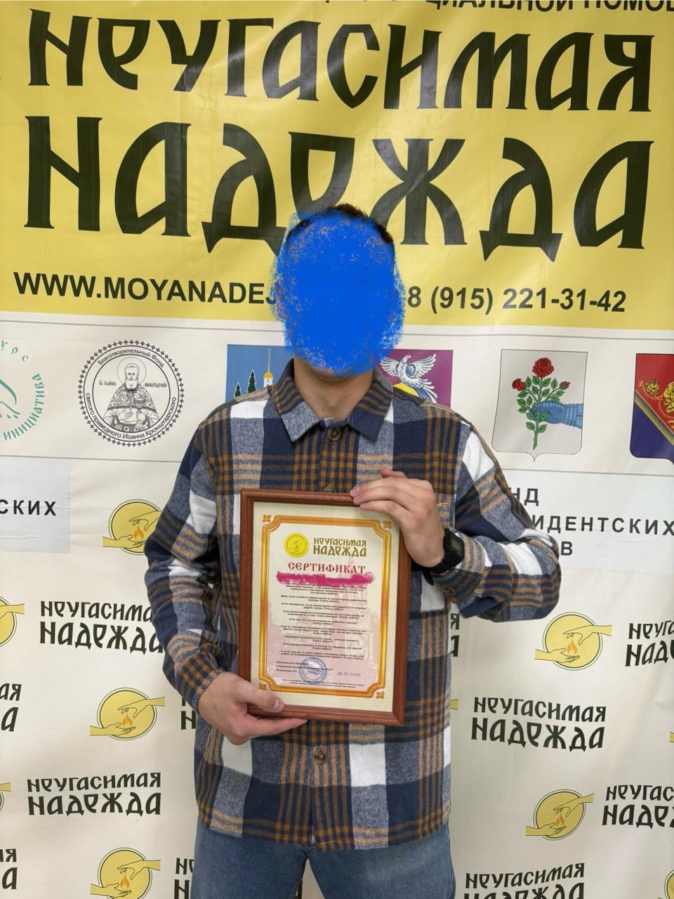 В самом низу страницы есть видео, где высказывается наш подопечный, Максим. Он успешно прошёл в "Неугасимой Надежде" четырёхмесячную реабилитацию от спайса